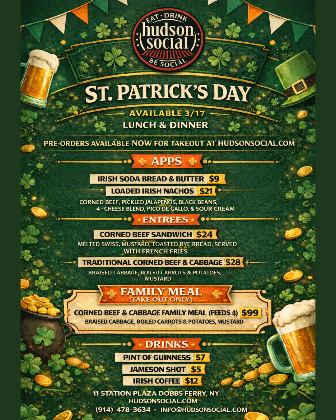 If you are looking to enjoy the beautiful Dobbs Ferry waterfront, host a special event, or you are taking the train up from or to Manhattan, Hudson Social is the perfect stop for great food and drinks. Located in the Historic Dobbs Ferry train station house, we offer a cozy and welcoming dining experience.